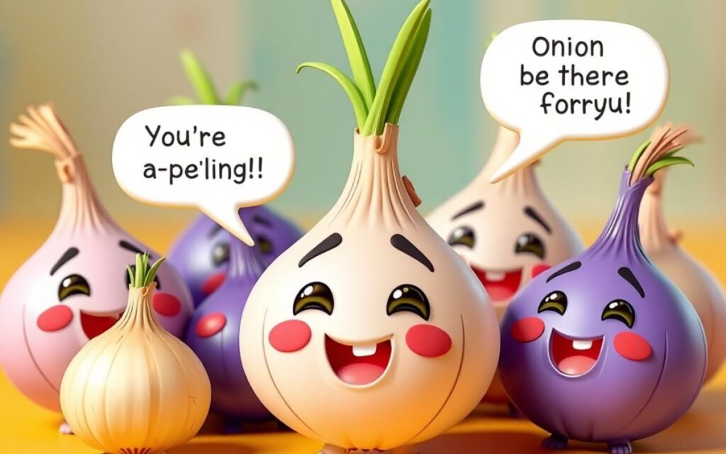 Time to get silly! These funny onion puns are perfect for lightening the mood, sharing kitchen humor with friends, or adding some comedy to your cooking adventures.