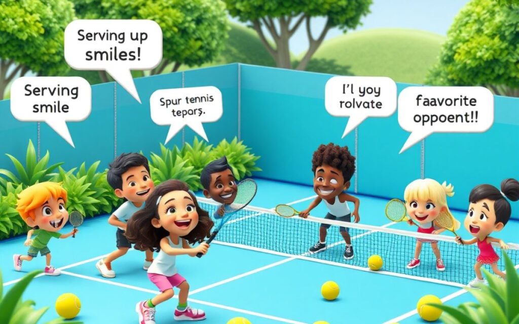 Quick-fire tennis jokes and witty sayings that pack maximum humor into minimal words!